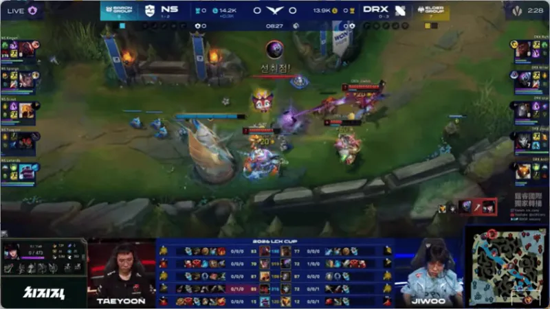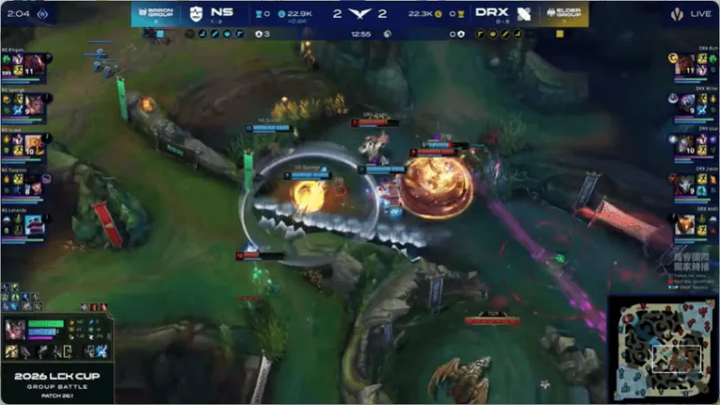 22分钟,DRX中路开团,两边打野互换