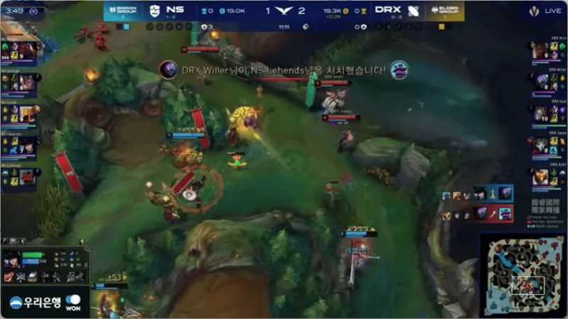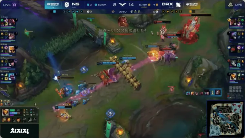 12分钟,两边河道混战,DRX打出2换4大获全胜