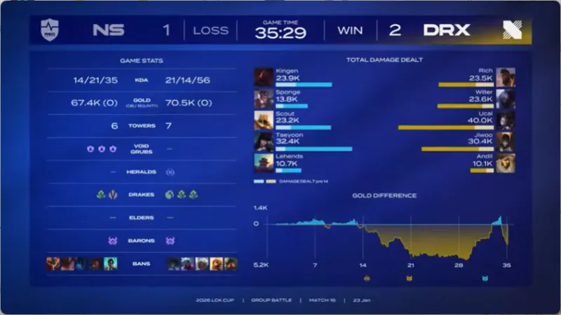 虎扑01月23日讯 虎扑01月23日讯 【GAME2】DRX蓝色方,NS红色方