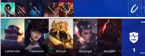 NS选用:Kingen塞恩、Sponge赵信、Scout沙皇、Taeyoon女警、Lehends布隆