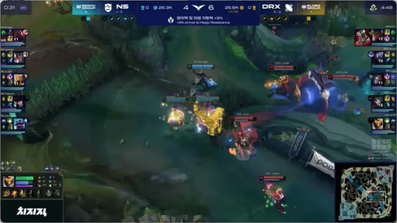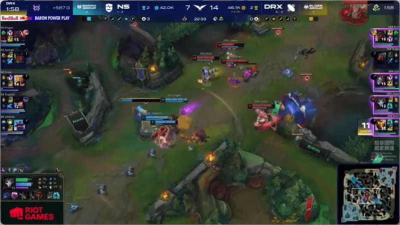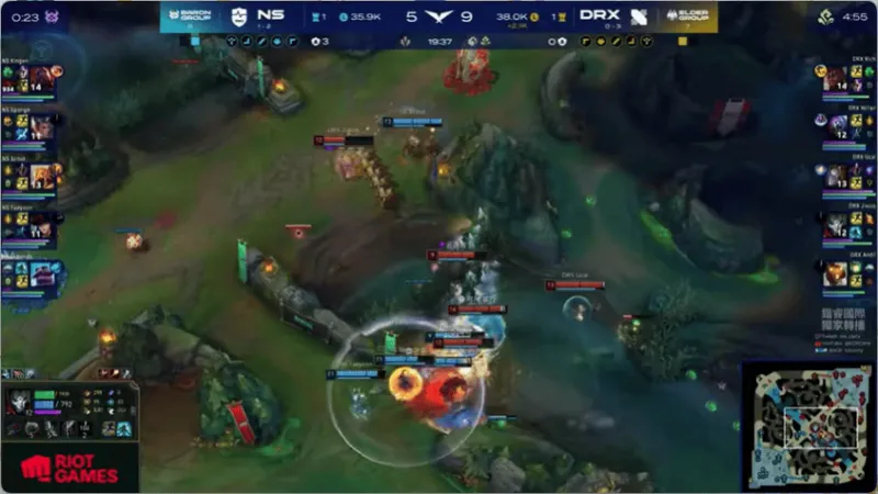 12分钟,两边河道混战,DRX打出2换4大获全胜